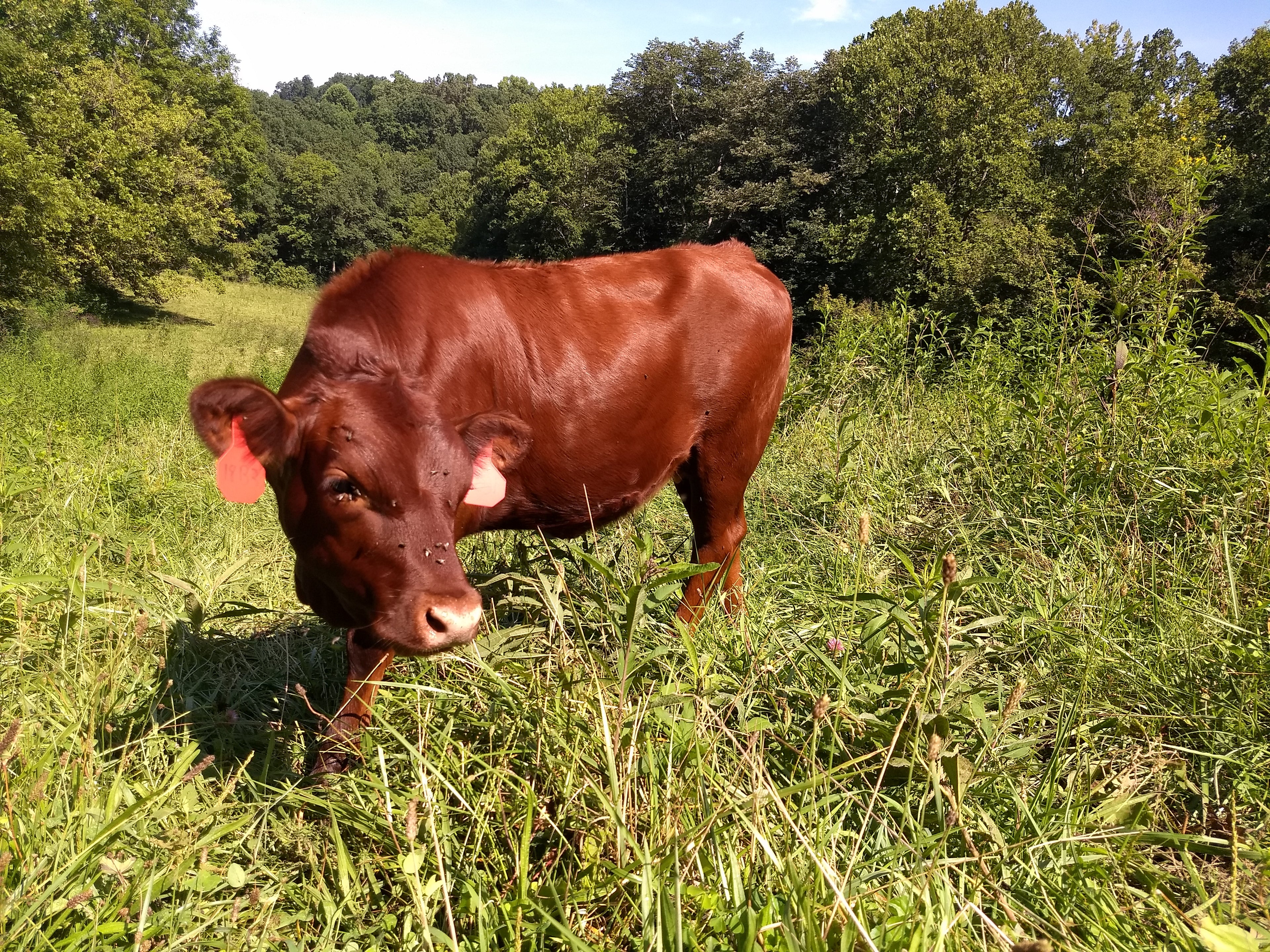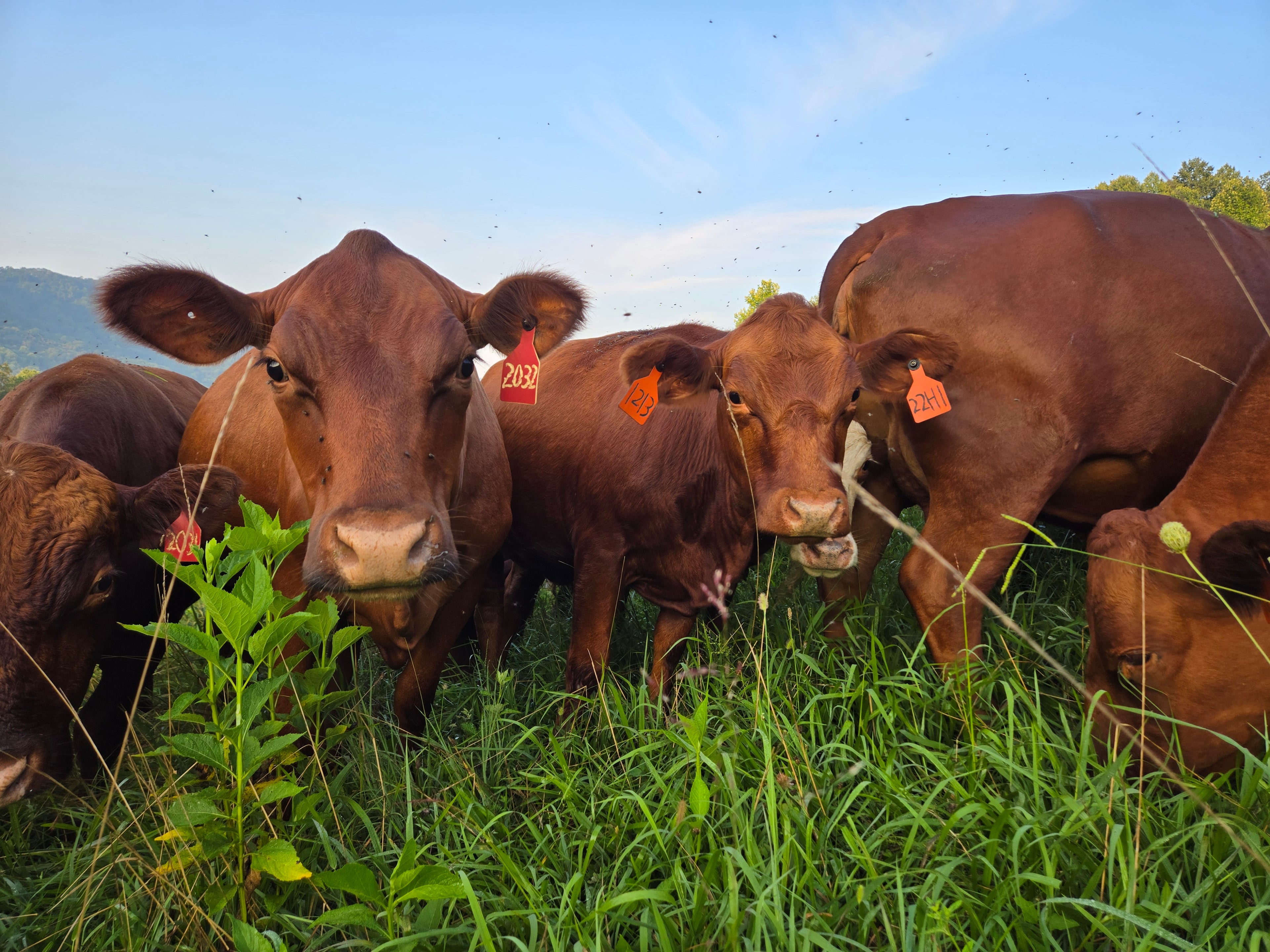We have switched to using South Poll cattle. This breed is a hardy, southern grass cow that gives us a step ahead in selecting quality genetics. We rely on good genetics and management to ensure our herd performs well without inputs, such as vaccines, grain feed, or hormones.