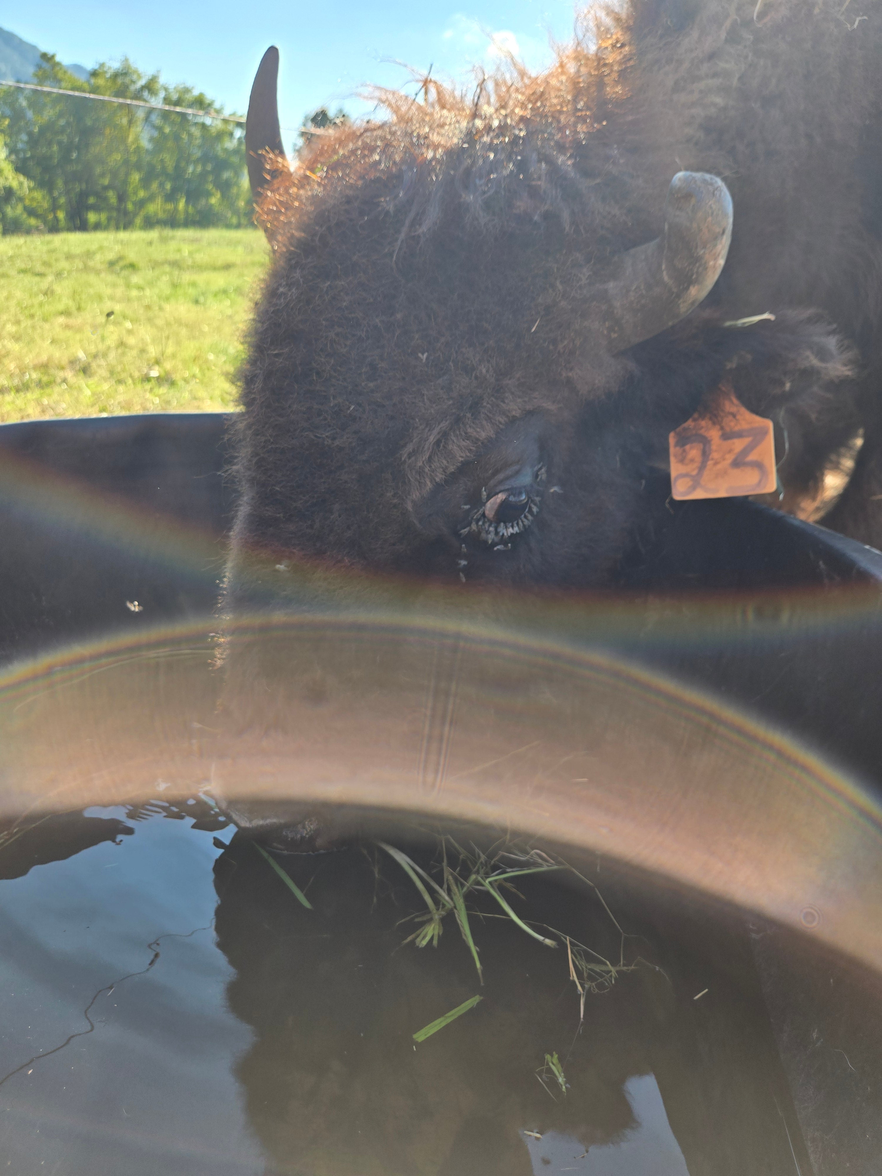 Fast forward to now. We currently have 3 two year old bison we are grazing through the summer for grassfed/finished bison to provide in the fall. These animals (along with 12 one year old bison that are being used at a local rodeo) all were purchased out of Nevada. We struggled with finding bison for the last several years locally and had to search out west. These animal came on the farm much healthier then the last ones and a lot faster. It has taken a lot more to train them to polywire and required us to far more on top of how we are fencing and keeping fences hot.